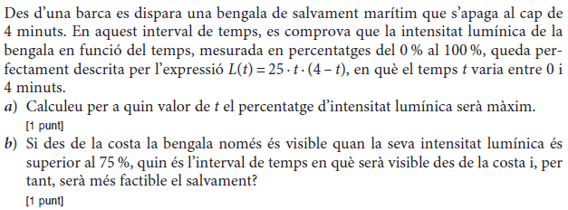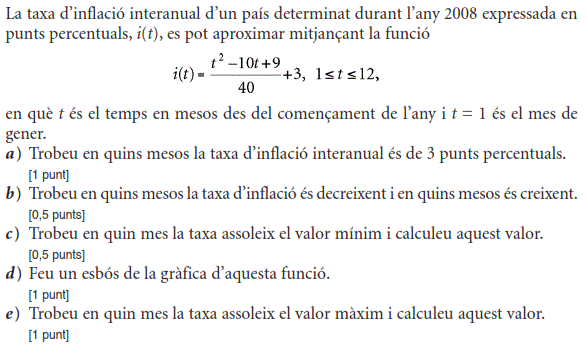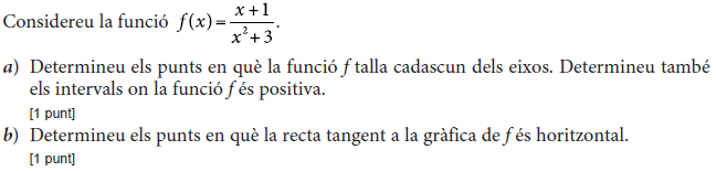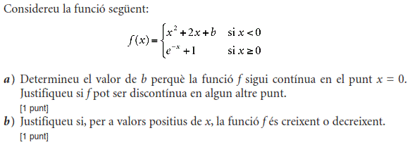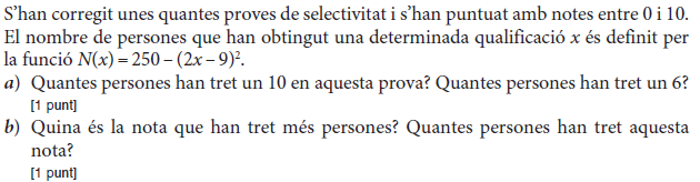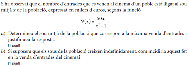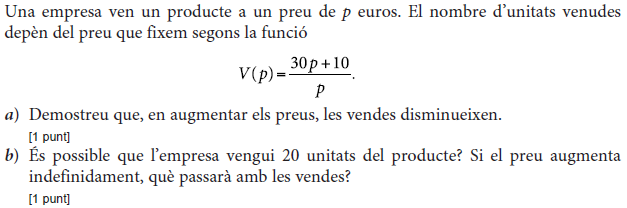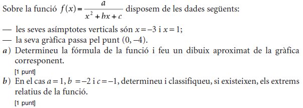 [1 punt] b) Calculeu el valor de b. [1 punt] - 2019 - Juny - sèrie 1 - 4. La funció `f(x)=40/(x^2-22x+125)` mostra aproximadament la venda diària, en milers d'unitats, d'un perfum de moda en funció de `x`, en que `x` és el dia del mes de febrer
