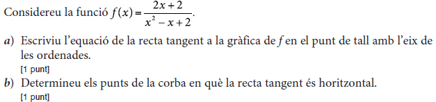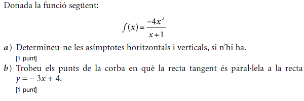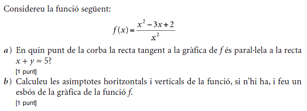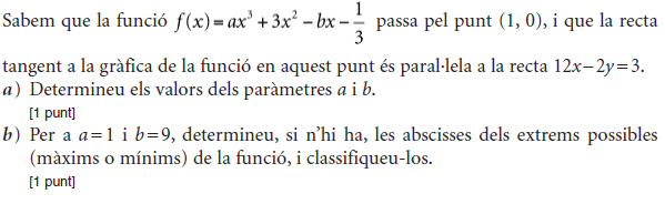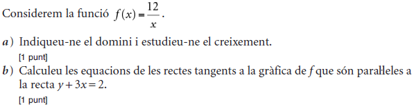 - 2009 - Juny - sèrie 4 - 3. ![]() - 2009 - Juny - sèrie 4 - 6. ![]() - 2009 - Juny - sèrie 3 - 1. ![]() - 2009 - Juny - sèrie 3 - 3. ![]() - 2009 - Setembre - sèrie 1 - 3. ![]() - 2009 - Setembre - sèrie 1 - 6. ![]() - 2010 - Juny - sèrie 1 - 1. ![]() - 2010 - Juny - sèrie 1 - 2. ![]() - 2010 - Juny - sèrie 1 - 4. ![]() - 2010 - Juny - sèrie 4 - 2. ![]() - 2010 - Juny - sèrie 4 - 3. ![]() - 2010 - Juny - sèrie 4 - 6. ![]() - 2010 - Juny - sèrie 5 - 2. ![]() - 2010 - Juny - sèrie 5 - 4. ![]() - 2010 - Juny - sèrie 5 - 5. ![]() - 2010 - Setembre - sèrie 2 - 2. ![]() - 2010 - Setembre - sèrie 2 - 3. ![]() - 2010 - Setembre - sèrie 2 - 6. ![]() - 2011 - Juny - sèrie 1 - 3. ![]() - 2011 - Juny - sèrie 1 - 5. ![]() - 2011 - Juny - sèrie 1 - 6. ![]() - 2011 - Juny - sèrie 4 - 1. ![]() - 2011 - Juny - sèrie 4 - 4. ![]() - 2011 - Juny - sèrie 4 - 6. ![]() - 2011 - Setembre - sèrie 2 - 1. ![]() - 2011 - Setembre - sèrie 2 - 4. ![]() - 2011 - Setembre - sèrie 2 - 6. ![]() - 2012 - Juny - sèrie 3 - 1. ![]() - 2012 - Juny - sèrie 3 - 5. ![]() - 2012 - Setembre - sèrie 4 - 1. ![]() - 2012 - Setembre - sèrie 4 - 2. ![]() - 2012 - Setembre - sèrie 4 - 5. ![]() - 2013 - Juny - sèrie 4 - 1. ![]() - 2013 - Juny - sèrie 4 - 3. ![]() - 2013 - Juny - sèrie 4 - 4. ![]() - 2013 - Juny - sèrie 4 - 6. ![]() - 2013 - Setembre - sèrie 1 - 1. ![]() - 2013 - Setembre - sèrie 1 - 6. ![]() - 2014 - Setembre - sèrie 5 - 2. ![]() - 2014 - Setembre - sèrie 5 - 3. ![]() - 2014 - Setembre - sèrie 5 - 6. ![]() - 2015 - Juny - sèrie 2 - 1. ![]() - 2015 - Juny - sèrie 2 - 3. ![]() - 2015 - Juny - sèrie 2 - 5. ![]() - 2015 - Juny - sèrie 4 - 2. ![]() - 2015 - Juny - sèrie 4 - 3. ![]() - 2015 - Juny - sèrie 4 - 5. ![]() - 2015 - Setembre - sèrie 5 - 2. ![]() - 2015 - Setembre - sèrie 5 - 3. ![]() - 2015 - Setembre - sèrie 5 - 4. ![]() - 2016 - Juny - sèrie 3 - 1. ![]() - 2016 - Juny - sèrie 3 - 2. ![]() - 2016 - Juny - sèrie 3 - 4. ![]() - 2016 - Setembre - sèrie 1 - 2. ![]() - 2016 - Setembre - sèrie 1 - 3. ![]() - 2016 - Setembre - sèrie 1 - 5. ![]() - 2017 - Juny - sèrie 1 - 1. ![]() - 2017 - Juny - sèrie 1 - 2. ![]() - 2017 - Juny - sèrie 1 - 6. ![]() - 2017 - Juny - sèrie 5 - 4. ![]() - 2017 - Juny - sèrie 5 - 5. ![]() - 2017 - Setembre - sèrie 2 - 2. ![]() - 2017 - Setembre - sèrie 2 - 3. ![]() - 2017 - Setembre - sèrie 2 - 6. ![]() - 2019 - Juny - sèrie 1 - 3. La gràfica de la funció `f(x)=ax+b+8/x` passa pel punt `(–2, –6)` i la recta tangent en aquest punt és paraŀlela a l’eix de les abscisses.
